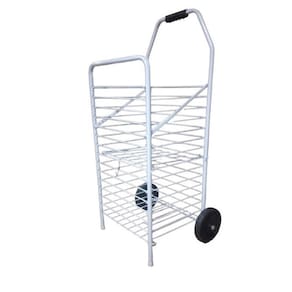 Carrinho de feira branco com divisória dobrável reforçado Carrinho de feira branco com divisória dobrável reforçado