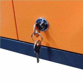 Carrinho de Ferramentas com Gaveta e Armário Atende as necessidades de organização do local de trabalho e ainda transporta e pode ser utilizado como bancada de trabalho. Utilizado nas mais diversas aplicações como oficinas e chão de fábrica para organização de ferramentas e acessórios. O Carrinho é desmontável o que facilita e barateia o transporte. - Possui uma gaveta com corrediças telescópicas de e duas portas com cadeado para fechamento. - Com 4 Rodízios de 3, dois fixos e dois móveis - Maior resistência e durabilidade: tratamento químico antiferrugens, fosfatizante e pintura eletrostática a pó - Bandeja Reforçada - Trava para cadeado - Cor: Cinza com detalhes laranja Profundidade: 600mm + 75mm do cabo Largura: 400mm Altura: 850mm Carga Máxima: 80Kg distribuídos