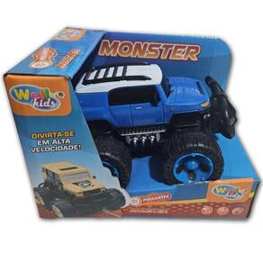 Carrinho De Fricção Monster Trucks Possantes Wellkids Azul E Branco