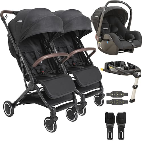 Carrinho de Bebe para Gêmeos Kiddo Sprint II com Bebe Conforto Casulo Click e Base para Carro ISOFIX