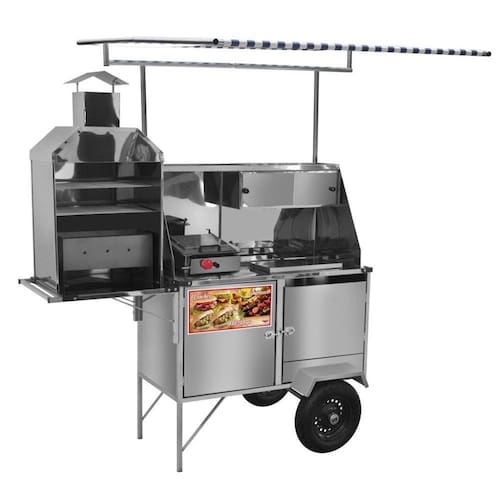 Ótima opção para quem quer empreender, o Carrinho De Hot Dog + Lanche + Churrasco Luxo Com Rodas Pneumáticas e Toldo, é um produto de excelente qualidade, de fácil manuseio e limpeza e muito prático.