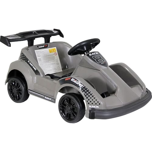A diversão da criançada está garantida com o Kart Elétrico 6V Cinza Com um design incrível, os pequenos vão se sentir como verdadeiros pilotos da Fórmula 1. O kart possui adesivos em todos os lados e ainda conta com um aerofólio, assim como os carros de corrida das maiores categorias do automobilismo. O Kart Elétrico 6V Cinza tem volante com 2 botões um para buzina e outro para tocar música , botões de liga/desliga e frente/ré, entrada USB e pedal para acelerar. Para maior segurança da criança, tem cinto de segurança com 2 pontas e controle remoto para que um adulto possa controlar. informações: Volante com 2 botões: um para buzina e outro para tocar música funciona com 2 pilhas AA Não Incluídas Botão de liga/desliga Botão de seleção frente e ré Entrada USB Cinto de segurança 2 pontas Pedal para que a criança possa acelerar Pode ser controlado pela criança ou por um adulto através do controle remoto Idade recomendada: acima de 3 anos Peso máximo suportado: 30kg Quantidade por embalagem 1 unidade de 90 dias contra defeitos de fabricação Imagens meramente ilustrativas. As tonalidades de cores podem variar de acordo com o monitor, celular ou até mesmo percepção. Homologação Inmetro: 00763/2021-BRINQ-1 Marca: Não Informado