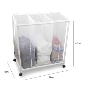 Carrinho de Lavanderia Triplo com Rodinhas e 3 Divisórias Organização e Praticidade