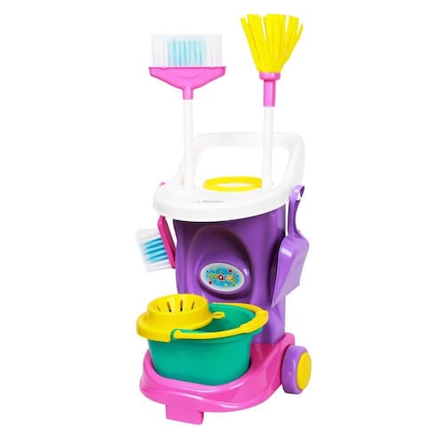 A brincadeira de casinha vai ficar ainda mais completa e divertida com a Carrinho de Limpeza e Acessórios - Cleaning Trolley - Maral