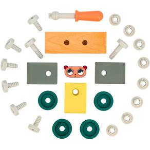 Ficha Técnica: Marca: Janod Idade Recomendada: a partir de 2 anos Material: Madeira de reflorestamento e plástico Conteúdo: 25 peças (inclui chave e acessórios para montagem)