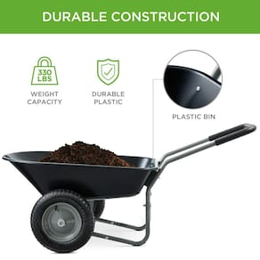 Especificações: Dimensões gerais: 147 cm (C) x 69,8 cm (L) x 66 cm (A) Tambor: 16,5 cm-25,4 cm (profundidade) Alça: 50 cm (C) x 42,5 cm (L) x 71 cm (A) do solo Haste do cabo: 2,5 cm (diâmetro) Enchimento da alça: 68,5 cm (C) x 4,4 cm (diâmetro) x 0,6 cm (espessura) Rodas: 35.6 cm (diâmetro) x 7.6 cm (espessura) Capacidade de peso: 150 kg. Peso: 9,5 kg. Material: Aço, poliuretano, borracha Montagem necessária (com instruções) Apenas para uso residencial SKU BCP: SKY7889 - CARRINHO DE JARDIM MULTIUSO: Carrinho de mão profundo comporta até 5 pés cúbicos de terra, tijolos, cobertura morta, cascalho e muito mais, para que você possa realizar convenientemente paisagismo e outros projetos de melhoria da casa - Design de 2 rodas: Construído com rodas de borracha infláveis de 35,5 cm para uma construção robusta que facilita dirigir o carrinho em vários terrenos - BARRA VERSÁTIL: O guidão espesso e acolchoado funciona como um suporte para uso ocioso e torna a movimentação do carrinho de mão fácil e confortável - COMPOSIÇÃO DURÁVEL: Este item essencial para trabalho pesado no quintal é feito com uma caixa de plástico e estrutura de aço revestida a pó que evita quebra e desgaste para uso duradouro - Fácil armazenamento: um perfil compacto combinado com ação de inclinação fácil permite que você armazene perfeitamente este carrinho de mão na vertical em sua garagem ou galpão de jardim; Dimensões gerais: 147 cm (C) x 69,8 cm (L) x 66 cm (A); Capacidade de peso: 149,7 kg.