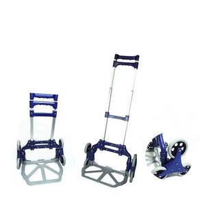 Carrinho de mão dobrável com 3 rodas de cada lado, foi desenvolvido para facilitar o transporte de seus itens de maneira fácil e diminuir os obstaculos que aparecem no transporte de seus equipamentos. Contendo 6 rodas no total, o carrinho tem maior facilidade em subir escadas, pois as rodas quando vão de encontro com o degrau, giram em volta do eixo que prende elas ao carrinho. O carrinho é feito em alumínio super resistente, com partes em polipropileno, fazendo com que ele se torne um produto muito mais resistente e duradouro. Por ser dobravel, ele se torna uma peça muito compacta, facilitando na hora de transporta-lo, ou até mesmo na hora de guarda-lo, além disso tudo, você não precisa mais fazer uma grande força com total desgaste fisico só para levantar a alça do carrinho, ele conta com uma '' alça '' que embaixo da parte que segura para carrega-lo que funciona com um botão, assim que você puxa ele para cima, facilmente a alça sobe, sem desgaste fisico e sem fazer força, totalmente prático. Com todas essas características, ele acaba sendo útil em vários setores, em várias áreas da sua vida, serve tanto para carregar as suas caixas do mercado, como também papéis de um escritório, caixas com documentos, e peças de um estoque.