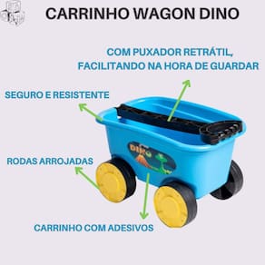 Carrinho de mão multifunções wagon dino +18 meses azul Carrinho de puxar multifunções