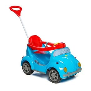 Controle de direção: Guiada pelo adulto com facilidade e segurança para manobrar, Encaixe e desencaixe o aro com praticidade, Encaixe e desencaixe o empurrador com praticidade, Mais facilidade para pedalar, Tração por correia, Com aro protetor, Com apoio de pés, Peças didáticas e buzina, Rodas com borracha para não derrapar, Idade Recomendada para passeio: A partir de 12 meses, Idade Recomendada para pedal: A partir de 24 meses, Certificação de Segurança do INMETRO, Suporta até 30 Kg, Cor: Azul.