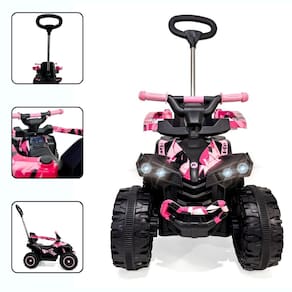 Especificações Técnicas: - Marca: Uni Toys - Modelo: Quadriciclo Meninas Poderosas - Código do Fabricante: 2656 - Faixa Etária Indicada: A partir de 12 meses - Capacidade Máxima: 30 kg - Acionamento: Faróis que acendem de verdade - Haste direcionável e removível - Aro de proteção removível - Material: Polipropileno