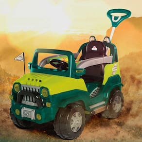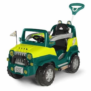 Carrinho de Passeio e Pedal - Jipe Diipi - Verde - Calesita: Chegou o Diipi! Está na área mais um carrinho dois em um super divertido. Com um design off road para os pequenos aventureiros. Diipi - 2 em 1 - Função Passeio: mantendo os acessórios, os papais podem conduzir o passeio ao empurrar o carrinho.- Para as aventuras de passeio com o papai ou a mamãe, ele vem com acessórios como o apoio de pés, aro protetor e haste com suporte para bolsa. Tem também um painel com peças em relevo, cores e formas que despertam a curiosidade dos pequenos e som que estimula a compreensão de causa e efeito. Diipi - 2 em 1 - Função Pedal: ao tirar os acessórios o Diipi vira um lindo veículo a pedal.- Para a diversão continuar com a versão pedal, é só desencaixar o aro protetor, retirar os apoios de pé e a haste. Pronto! Agora é só pedalar por aí! O Diipi tem borracha antiderrapante nas quadro rodas, buzina, bandeira de JP Clube e cinto de segurança como num Jipe de verdade. Os detalhes encantam e transportam os pequenos para o mundo da imaginação, como faróis de brincadeirinha na grade frontal, no retrovisor, e acima do banco. Ah tem também espaço para guardar pequenos acessórios ou garrafinha de água. É aventura e diversão garantida.Informações:- Produto: Carrinho Diipi 2 em 1- Marca: Calesita Brinquedos- Coleção: Diipi- Tipo: Carrinho 2 em 1 - Passeio e Pedal- Categoria: Carrinho de Passeio e Pedal- Tamanho (C x A x L): - 98 x 55 x 68 cm (sem haste)- 98 x 55 x 90 cm (com haste)- Volume (Peso): 8,6 kg- Peso suportado: até 30 kg- Conteúdo: - 01 Diipi- 01 Haste/Empurrador com Suporte para bolsa- 01 Aro Protetor- 01 Par de Apoio de Pés - 01 Manual de Instruções - Idade recomendada: - A partir de 12 meses de idade: Passeio - A partir de 24 meses de idade: PedalEspecificações:- Referência: 1027- Código de Barras: 7898179823864- Embalagem (C x A x L): 100 x 67 x 55 cm- Embalagem (Peso): 10.5kg- Material Composição: Plástico- Registro: CE-BRI/INNAC-02026-01A- Certificado: Órgãos Autorizados - OCPS (Organismos de Certificação de Produtos)Habilidades desenvolvidas:- Curiosidade e descoberta- Compreensão de causa e efeito- Coordenação entre olhos e pés- Coordenação motora fina - mãos e dedos- Coordenação motora grossa - braços e pernasAviso: - As imagens são meramente ilustrativas- Os pesos, tamanhos e medidas são aproximados- As cores e estampas dos produtos podem ter variações- As informações são de responsabilidade do fabricante ou fornecedor