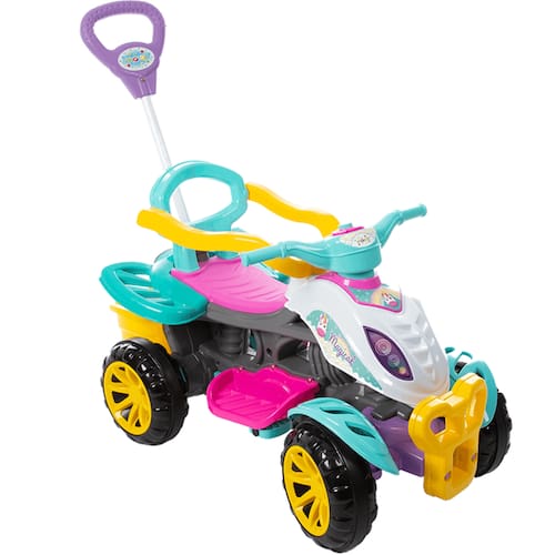 Carrinho de Passeio e Pedal para Bebes Maral Quadriciclo Está procurando um presente perfeito para seu bebê? O Carrinho de Passeio Pedal Quadriciclo da Maral vai proporcionar muito conforto e diversão nos passeios do seu bebê! E você vai conhecer TUDO sobre este lindo brinquedo aqui na Maçã Verde Baby! Presente perfeito para bebês de 12 meses até 30kg! Quem não gosta de ganhar um presente, não é verdade? Com a Quadriciclo da Maral você não vai errar e seu bebê terá um brinquedo que vai durar por muuuito tempo! A Quadriciclo da Maral é um brinquedo 2 em 1 que acompanha o crescimento do bebê e pode ser utilizado desde os 12 meses de idade até 30kg para passeios ou na função de pedal. Função passeio: empurrador, proteção e muita diversão a bordo do Quadriciclo Para os bebês de 1 aninho que ainda não conseguem pedalar sozinhos, você pode utilizar a função passeio. O brinquedo possui aro de proteção e assoalho de proteção. A diversão é garantida para os pequenos! O empurrador do Carrinho de Passeio Quadriciclo da Maral possui um suporte para carregar a bolsa. Acredite: isso vai facilitar muito durante os passeios!! Função pedal: as aventuras vão ficar mais divertidas! Quando seu bebê crescer, o Quadriciclo da Maral poderá ser utilizado na função pedal, sem o empurrador! A própria criança poderá controlar o brinquedo utilizando os pedais e o volante do Quadriciclo! O Quadriciclo é um brinquedo completo, uma ótima escolha que vai marcar a infância do seu bebê! Ele conta ainda com haste direcionável e removível, som, buzina, rodas com anel antiderrapante, assento com encosto anatômico, cercado removível, apoio para os pés removível, suporte para bolsa/sacola na alça da haste e sistema de tração para maior conforto e agilidade ao pedalar. Cores e modelos disponíveis O Quadriciclo da Maral é muito lindo, não é verdade? Ele tem detalhes incríveis, encantando as crianças! O Carrinho de Passeio Quadriciclo da Maral serve para meninos e meninas e está disponível nas versões Colorido, Menina, Spider e Lady Star. Gostou? Aproveite e garanta agora mesmo o seu Carrinho Passeio e Pedal Quadriciclo da Maral aqui na Maçã Verde Baby! Ficamos no aguardo de sua compra! Neste anúncio especial da Maçã Verde Baby, você vai levar: 1 (um) Carrinho de Passeio Pedal Maral Quadriciclo Menina Quer saber mais detalhes sobre o incrível Carrinho de Passeio Quadriciclo da Maral? Carrinho Pedal e Passeio Maral Quadriciclo 12+ meses Um produto com duas funções, prático e moderno para o adulto e divertido para as crianças! É compacto, prático e na medida certa para você levar o carrinho para onde você for. Ele tem direção e rodas guiadas pelo empurrador, vem com apoio de pé e aro protetor removível, suporte para bolsa no empurrador. O Quadriciclo acompanha o crescimento do seu bebê, os primeiros passeios são com o empurrador, e, para a segunda versão, é só retirar o aro protetor, o apoio de pé e o empurrador para que os pequenos possam se divertir pedalando. Ele tem roda com borracha antiderrapante. Contém: 1 Quadriciclo 1 Empurrador com suporte para bolsa 1 Aro Protetor 1 Par de Apoio de Pés 1 Manual de Instruções Habilidades desenvolvidas: Compreensão de causa e efeito, Coordenação entre olhos e pés, Coordenação motora fina – mãos e dedos, Curiosidade e descoberta, Habilidades Sensoriais FUNÇÃO PASSEIO: O adulto conduz o Quadriciclo como um carro de passeio. FUNÇÃO PEDAL: Permite à criança brincar livremente como um carro a pedal. Basta remover o apoio dos pés, o cercado de proteção e a haste. Haste direcionável e removível Rodas com anel antiderrapante Anel de proteção com chave e marcha que faz som crec-crec Pedais com eixo e corrente de aço Assento anatômico Apoio para os pés removível Idade: +12 meses Peso máximo suportado: 30kg Garantia de fábrica: 90 (noventa) dias Composição: Polietileno, plástico, metal e borracha Medidas do Carrinho Quadriciclo da Maral: Altura 61 cm x Largura 51 cm x Comprimento 92 cm Peso 6,6kg Certificado de Registro INMETRO IP-BRI-0732/2023-12 CE-BRI/INNAC-02026-02A NM 300/2002