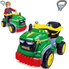 Carrinho de Passeio e Pedal para Bebes Maral Tractor Agro Está procurando um presente perfeito para seu bebê? O Carrinho de Passeio Pedal Tractor Agro da Maral vai proporcionar muito conforto e diversão nos passeios do seu bebê! E você vai conhecer TUDO sobre este lindo brinquedo aqui na Maçã Verde Baby! Presente perfeito para bebês de 12 meses até 25kg! Quem não gosta de ganhar um presente, não é verdade? Com o Tractor Agro da Maral você não vai errar e seu bebê terá um brinquedo que vai durar por muuuito tempo! O Tractor Agro da Maral é um brinquedo 2 em 1 que acompanha o crescimento do bebê e pode ser utilizado desde os 12 meses de idade até 25kg! Ele pode ser utilizado para passeios ou na função de pedal. Função passeio: empurrador, proteção e muita diversão a bordo doTractor Agro Para os bebês de 1 aninho que ainda não conseguem pedalar sozinhos, você pode utilizar a função passeio. O brinquedo possui aro de proteção para evitar que o bebê caia ou se desequilibre no brinquedo. Com o assoalho de proteção, os pézinhos não vão bater nos pedais e o empurrador vai ajudar você a conduzir o brinquedo durante os passeios. A diversão é garantida para os pequenos! O empurrador do Carrinho de Passeio Tractor Agro da Maral possui um suporte para carregar uma bolsa ou sacola de até 1,5kg. Acredite: isso vai facilitar muito durante os passeios! Além disso, o Carrinho Tractor Agro da Maral possui porta-objetos para transportar mamadeira, suco, água ou outros objetos. Função pedal: as aventuras vão ficar mais divertidas! E quando seu bebê crescer, o Tractor Agro da Maral poderá ser utilizado na função pedal, sem o empurrador! A própria criança poderá controlar o brinquedo utilizando os pedais e o guidão doTractor Agro! O Tractor Agro conta ainda com buzina e sons! É um brinquedo completo, uma ótima escolha que vai marcar a infância do seu bebê! Cores e modelos disponíveis O Tractor Agro da Maral é muito lindo, não é verdade? Ele tem detalhes incríveis para imitar um tratorzinho, encantando as crianças! O Carrinho de Passeio e Pedal Tractor Agro da Maral está disponível nas cores Laranja e Verde. Ela pode ser usada por apenas uma criança por vez e possui opções tanto para meninos, quanto para meninas! Gostou? Aproveite e garanta agora mesmo o seu Carrinho Passeio e Pedal Tractor Agro da Maral aqui na Maçã Verde Baby! Sua criança vai AMAR este presentão! Ficamos no aguardo de sua compra! Neste anúncio especial da Maçã Verde Baby, você vai levar: 1 (um) Carrinho de Passeio e Pedal Maral Tractor Agro Verde Quer saber mais detalhes sobre a incrível Tractor Agro de passeio e pedal da Maral? Carrinho de Passeio e Pedal Maral Tractor Agro 12+ meses Design moderno, colorido e com adesivos divertidos. Com pedal de metal e buzina Guidão com punhos emborrachados Apoio de pés removível A chave gira e o câmbio faz “creck-creck” Desenvolve o senso de direção. Segurança - O anel de proteção levanta para facilitar o acesso da criança. Na função Passeio, o adulto empurra o carrinho através da haste-guia, ela é metálica e de fácil remoção. Tem gancho superprático para pendurar uma bolsa ou sacola até 1,5 kg. Na função Pedal, retirando a haste-guia, o apoio de pés e o anel de proteção, a criança pode pedalar e brincar sozinha desenvolvendo o senso de direção e coordenação motora. Anel de Proteção removível euma peça adicional para dar maior segurança às crianças menores. Guidão com punhos emborrachados e buzina Apoio de pés removível 1 porta objetos para transportar mamadeira, suco, água ou outros objetos Contém: 1 Tractor Agro 1 Haste/Empurrador 1 Suporte para bolsa 1 Aro Protetor 1 Par de Apoio de Pés 1 Manual de Instruções Habilidades desenvolvidas: Compreensão de causa e efeito, Coordenação entre olhos e pés, Coordenação motora fina – mãos e dedos, Curiosidade e descoberta, Habilidades Sensoriais, Coordenação entre Olhos e Mãos, Coordenação Motora Grossa – Braços e Pernas, Atenção e Concentração, Compreensão de Causa e Efeito, Curiosidade e Descoberta. 2 em 1: acompanha o crescimento do bebê Função passeio: empurrador com suporte para bolsa para os pais controlarem o brinquedo. Pode ser instalado com aro de proteção. Função pedal: basta remover o assoalho, o empurrador e o aro de proteção. A própria criança controlará a direção do brinquedo e os pedais. Passeio: direção e rodas guiadas pelo empurrador Pedal: rodas com borracha para não derrapar Espaço para guardar brinquedos Apoio de pé removível Encaixe e desencaixe o empurrador com praticidade Suporte para bolsa Buzina Rodas com borracha Cinto de segurança Idade recomendada: 1 a 3 anos Peso máximo suportado: 25kg Composição: Polietileno, plástico, metal e borracha Medidas do Carrinho Tractor Agro da Maral: Altura 54,5 cm x Largura 47,8 cm x Comprimento 112 cm Peso 7,16kg Certificado de Registro INMETRO IP-BRI-1871/2021-12