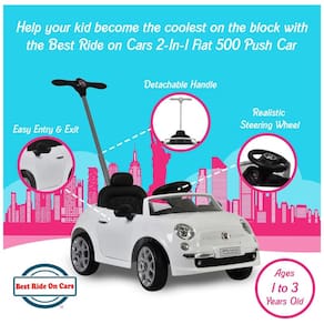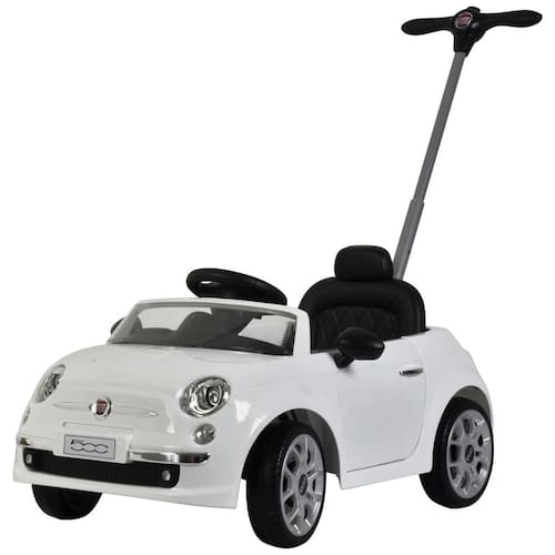 O carro de empurrar Fiat 500 licenciado vem com carrinho de passeio, apoio para os pés ajustável, alça ajustável, buzina e música, portas abertas Marca: Não Informado