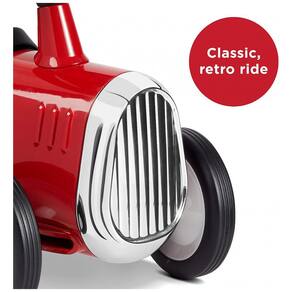 DESIGN CLÁSSICO: O design clássico do Little Red Roadster inclui uma carroceria de aço resistente, acabamentos cromados, direção funcional e buzina. Este passeio confiável durará anos.