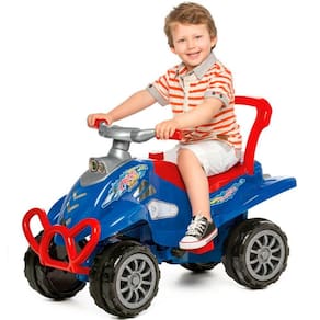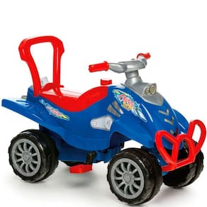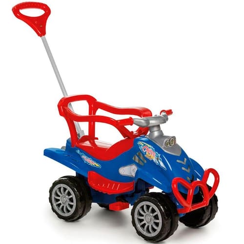 Conteúdo da embalagem: - 01 Cross Calesita; - 01 Haste; - 01 Puxador; - 01 Aro protetor. Características Técnicas: Controle de direção: Guiada pelo adulto com facilidade e segurança para manobrar; Encaixe e desencaixe o aro com praticidade; Encaixe e desencaixe o empurrador com praticidade; Mais facilidade para pedalar; Tração por correia; Com buzina; Com aro protetor; Com apoio de pés; Espaço para guardar brinquedos; Rodas com borracha para não derrapar; Certificação de Segurança do INMETRO; Suporta até 45 Kg; Cor: Azul