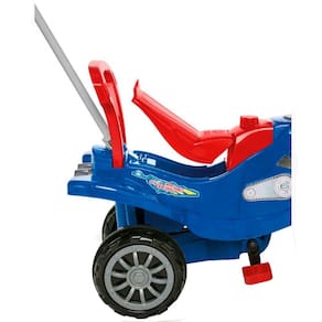 Aventuras, passeio e pedal, ficam mais divertidos com o Carrinho de Passeio ou Pedal Cross Turbo Calesita, um carrinho seguro e divertido para passeios. Confortável e grande, é o companheiro ideal para a aventura dos pequenos. Os acessórios de passeio são móveis, podendo retira-los, assim libera o volante e a criança pode pedalar desenvolvendo a coordenação dos movimentos. Disponível com buzina e assento reclinável para guardar brinquedos e suas rodas são com borracha para evitar derrapar. Indicado para o peso de até 45 kg e passeio a partir de 01 ano, pedal 02 anos.