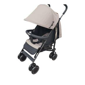 Carrinho de bebê compacto, leve e sofisticado. Com múltiplas posições de inclinação, ampla capota com visor, apoio ajustável para os pés e alça para transporte.