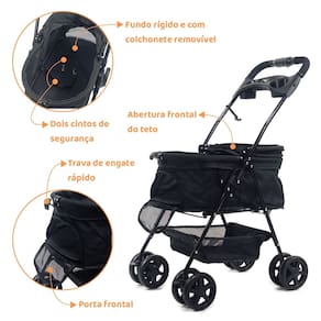 O carrinho de passeio é uma solução segura e confortável para o dia a dia do seu pet.