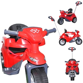 Quando a criança estiver maior, o empurrador, apoio de pés e aro protetor podem ser facilmente removidos. Assim, os pedais dianteiros ficam livres e a criança pode brincar sozinha, desenvolvendo habilidades motoras, coordenação e noção de espaço.