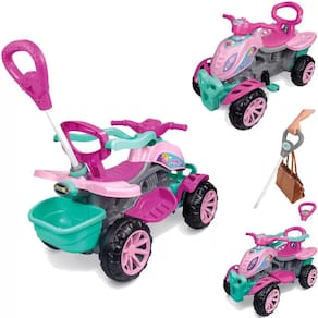 Carrinho Pedal e Passeio Maral Quadriciclo Lady Star12+ mesesUm produto com duas funções, prático e moderno para o adulto e divertido para as crianças!É compacto, prático e na medida certa para você levar o carrinho para onde você for.Ele tem direção e rodas guiadas pelo empurrador, vem com apoio de pé e aro protetor removível, suporte para bolsa no empurrador.O Quadriciclo acompanha o crescimento do seu bebê, os primeiros passeios são com o empurrador, e, para a segunda versão, é só retirar o aro protetor, o apoio de pé e o empurrador para que os pequenos possam se divertir pedalando. Ele tem roda com borracha antiderrapante.Contém:1 Quadriciclo1 Empurrador com suporte para bolsa1 Aro Protetor1 Par de Apoio de Pés1 Manual de InstruçõesHabilidades desenvolvidas: Compreensão de causa e efeito, Coordenação entre olhos e pés, Coordenação motora fina – mãos e dedos, Curiosidade e descoberta, Habilidades SensoriaisFUNÇÃO PASSEIO: O adulto conduz o Quadriciclo como um carro de passeio.FUNÇÃO PEDAL: Permite à criança brincar livremente como um carro a pedal. Basta remover o apoio dos pés, o cercado de proteção e a haste.Haste direcionável e removívelRodas com anel antiderrapanteAnel de proteção com chave e marcha que faz som crec-crecPedais com eixo e corrente de açoAssento anatômicoApoio para os pés removívelIdade: +12 mesesPeso máximo suportado: 30kgGarantia de fábrica: 90 (noventa) diasComposição: Polietileno, plástico, metal e borrachaMedidas do Carrinho Quadriciclo da Maral: Altura 61 cm x Largura 51 cm x Comprimento 92 cmPeso 6,6kgCertificado de Registro INMETRO IP-BRI-0732/2023-12 CE-BRI/INNAC-02026-02A NM 300/2002 Ean: 7908682400206