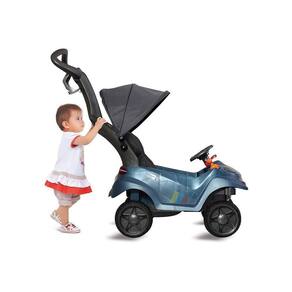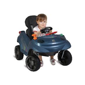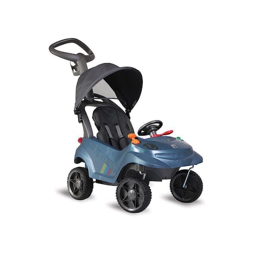 Além de bonito, é pratico, acompanha cesto traseiro para o transporte de objetos, suporte de mamadeira, capota articulável e giratória. E depois do longo passeio o assento acolchoado permite a criança dormir confortavelmente. Conta com painel de atividades e volante com dispositivo luminoso e sonoro.