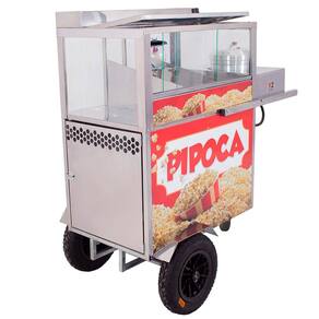 O Carrinho de Pipoca Doce e Salgada com Pipoqueira e Lampião é perfeito para quem deseja iniciar um negócio de venda de pipoca ou para quem já trabalha com isso e pretende aprimorar suas vendas. Com este carrinho, você pode fazer pipoca doce ou salgada, graças à sua pipoqueira. Além disso, o carrinho vem equipado com um lampião para iluminar suas vendas noturnas. Possui um chassi em tubo metalon galvanizado, revestido em aço inox e aço galvanizado que garante resistência e durabilidade. Além de vidro temperado com espessura de 4mm em todos os lados, proporcionando segurança e visibilidade para o preparo das pipocas. O carrinho também possui um compartimento interno inferior para guardar os utensílios, uma abertura frontal e superior para pegar pipoca e uma bandeja superior em aço inox para colocar acessórios de trabalho.