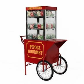 Com este prático carrinho você poderá iniciar um negócio vendendo deliciosas pipocas gourmet em locais de grande circulação de pessoas como festas, eventos, praças, shoppings, feiras, parque de diversões, etc.