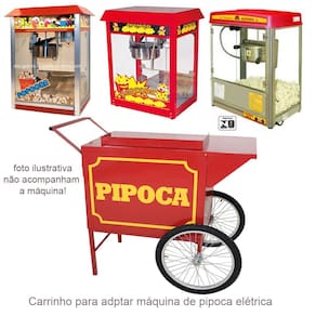 Obs: este carrinho não acompanham a (s) máquina (s) para pipoca , foto somente demostrativa para informar que este modelo de carrinho pode ser adptada varios modelo de máquinas de pipoca, qualquer duvida consulte a ( Pipocar ).