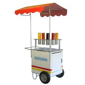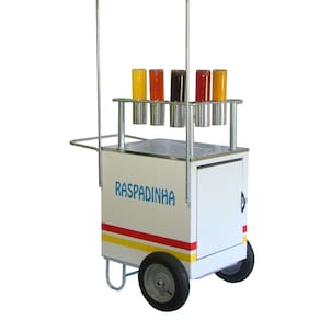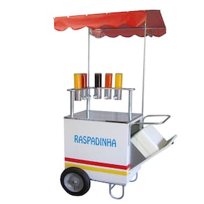 Com este prático carrinho você poderá iniciar um negócio vendendo deliciosas raspadinhas em locais de grande circulação de pessoas como festas, eventos, praças, shoppings, feiras, parque de diversões, etc.