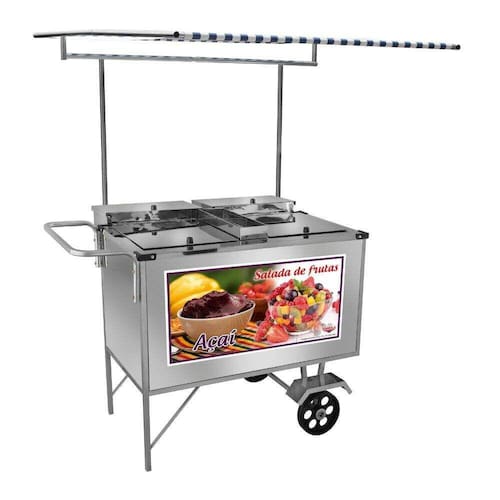 Carrinho de Salada de Frutas e Açaí Inox com Toldo e Rodas Maciças