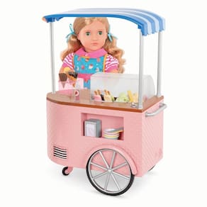 Carrinho de sorvete com rodinhas para bonecas de 46cm Pegue e sirva suas guloseimas favoritas com este playset Our Generation Qual delícia seus clientes vão experimentar primeiro Existem muitas escolhas Pegue seus sabores favoritos dos 4 blocos de sorvete e coloque-os em cima de um waffle, chocolate ou casquinha de polvilho Distribua os 6 picolés ou 4 biscoitos na bandeja de lanches e adicione confeitos coloridos com os 2 tipos de garrafas de calda Este carrinho rosa tem 3 rodas para virar as esquinas facilmente e é preenchido com vários compartimentos de armazenamento para manter seu carrinho de sobremesa arrumado durante todas as viagens Acessórios faz de conta. Bonecas vendidas separadamente. Our Generation não se trata apenas de uma boneca, um lindo conjunto de roupas ou mesmo um kit de acessórios fantásticos. É sobre incentivar crianças de todos os estilos e gostos a criar suas próprias histórias, desenvolvendo um universo ilimitado de brincadeiras com bonecas e acessórios. Sua embalagem é feita de material reciclado, especialmente desenvolvida para uma geração mais ecológica que não aceitaria nada menos. Essa é a nossa história, e essa é a nossa turma Homologação Inmetro: IP-BRI-1866/2021-01 Ean: 7897500503451
