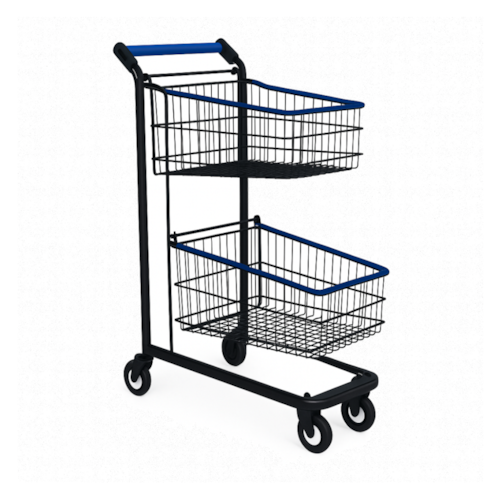O Carrinho de Supermercado Duplo Cesto 70 Litros Gold Line Pintado Minascar combina robustez, design moderno e praticidade no transporte de mercadorias. Ideal para supermercados, minimercados, farmácias e lojas de conveniência, seu formato compacto permite otimizar o espaço sem renunciar à capacidade. Fabricado em aço 1006 reforçado, com chassi em tubo 30x16 mm de espessura 1,20 mm, oferece alta resistência a impactos e desgaste. Seu acabamento em pintura epóxi preta (WEG), com tecnologia antibacteriana e livre de toxidade, garante maior durabilidade e um visual sofisticado. Conta com 4 rodas termoplásticas, sendo 2 rodízios com espiga giratória e 2 sapatas fixas, proporcionando mobilidade fácil, silenciosa e segura.