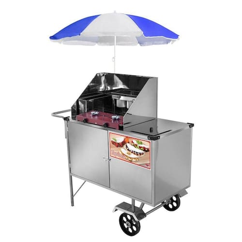 Carrinho de Tapioca Luxo com Rodas Maciças e Guarda-Sol