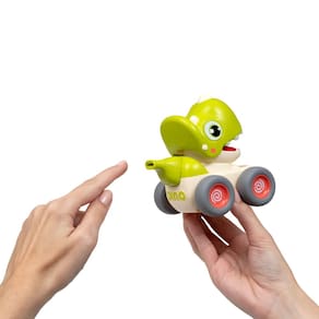 Já imaginou um dinossauro com rodinhas e com apito na cauda? Assim é o Dino da Buba, que promete horas de diversão ao alcançar velocidade, por fricção, pressionando a sua cabeça.