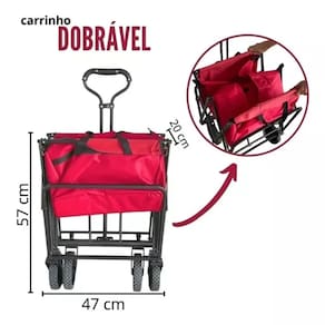 Carrinho Dobrável Articulado Transporte Camping Praia Pesca Até 80 Kg Importway Vermelho