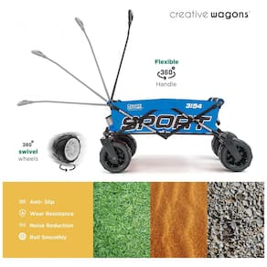 RODAS GIRATÓRIAS DE 360 GRAUS O vagão foi projetado para ser puxado atrás de você as rodas dianteiras têm um giro de 360 graus, permitindo que você contorne os obstáculos. O design giratório de operação suave permite que este vagão deslize e gire sem esforço