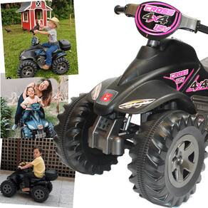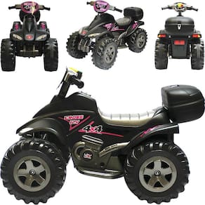 O Carrinho Elétrico Quatry Cross 12V da Biemme está disponível nas versões Preto Azul Boy e Preto Rosa Girl.