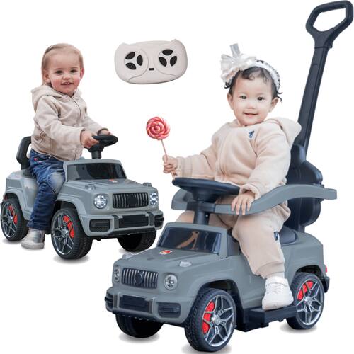 O Jipe 4 em 1 R/C Elétrico 6V é um brinquedo completo que se adapta às diferentes fases da criança. Pode ser conduzido no modo passeio com a haste direcional removível, utilizado como balanço para bebês menores, pilotado de forma independente pelo pedal ou controlado por um adulto através do controle remoto 2.4G codificado. Um brinquedo que evolui com a criança e garante anos de diversão!
