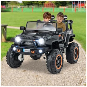 Sistema de suspensão em molas nas 4 rodas, pneus em polipropileno de alta densidade, funcionamento com marcha de avanço/recuo, portas abre-fecha com trava de segurança, faróis/luzes de LED e acabamento SUV robusto. Função partida suave evita trancos, ajuste manual 2WD/4WD, garantindo maior estabilidade e controle.