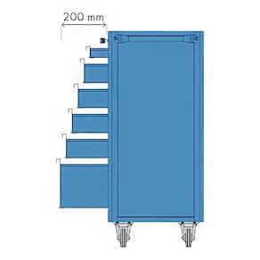 - Características: Estrutura em aço carbono com pintura eletrostática a pó. 5 gavetas chaveadas: 4 do modelo B e 1 do modelo A, com capacidade de 15 kg cada e abertura de 200 mm. Puxador ergonômico para facilitar o manuseio. Rodas: 2 fixas de 3" (RM-83) e 2 giratórias de 3" (RM-95). 1 prateleira fixa para armazenar itens maiores.