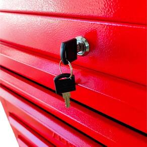 Pintura: Eletroestática. Gavetas Com Chaveamento Único. Acompanha Chave Reserva. 04 Rodízios de 3'': 02 Fixos - 02 Giratórios - 01 Com Freio. 02 Gavetas Com Divisórias mm : 500 x 360 x 60. 02 Gavetas Com Divisórias mm : 500 x 360 x 100. 01 Gaveta Sem Divisória mm : 500 x 360 x 100. 01 Gaveta Sem Divisória mm : 500 x 360 x 190.