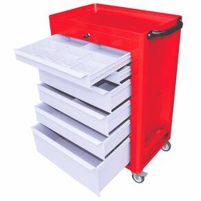 Modelo: Carrinho Fechado Com 6 Gavetas. Dimensões - CxLxA mm : 650 x 410 x 850. Capacidade Kg : 120. Cor: Vermelho. Peso do Produto Embalado Kg : 30,270.