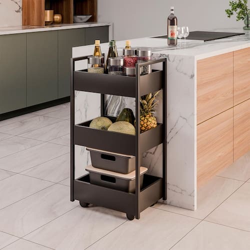 Carrinho Organizador Multiuso para Cozinha Salão de Beleza com Rodinhas Preto Laís