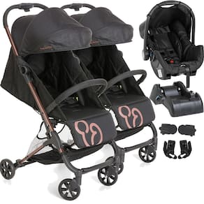 Carrinho de Bebe para Gêmeos Galzerano Duolee Duo com Bebe Conforto Grid e Base para Carro