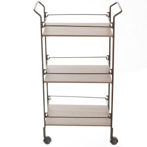 Características: - Material Durável: Produzido em aço com pintura eletrostática e detalhes em madeira, garantindo resistência e durabilidade ao carrinho. - Design Moderno: Com um acabamento sofisticado em tom marrom, o carrinho High Brown combina estilo e praticidade em um só produto. - Fácil de Limpar: Para manter o carrinho sempre limpo e conservado, basta utilizar sabão ou detergente neutro e uma esponja macia. Evite o uso de solventes, objetos cortantes ou abrasivos para preservar a integridade do material.