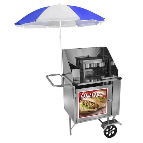 Carrinho Ambulante Hot Dog Simples Rodas Maciças e Guarda-Sol Cefaz