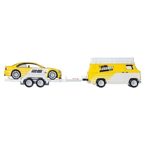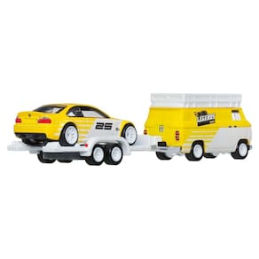 O Hot Wheels Collector Legends Team Transport traz um BMW M3 E46 e caminhão de rali em escala 1:64 com acabamento premium Criado para a HW Legends Tour, celebra a cultura automotiva e os construtores lendários Conta com pneus Real Riders™ e construção Metal/Metal™ para alta fidelidade