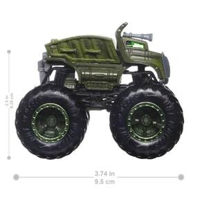 Os Monster Trucks de Hot Wheels são produzidos em escala 1:64 e em metal fundido com aproximadamente 9,5cm de comprimento e 7cm de altura. São os caminhões mais irados já construídos para competição. Prepare-se para o combate mano-a-mano com suas rodas gigantes. Cada caminhão possui um carro macio que você monta e pode deixar o Monster Trucks encima como se estivesse esmagando o carro.