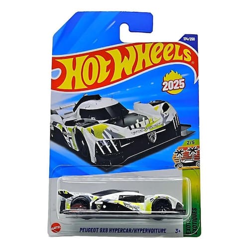 Este modelo de 2023, com o número 174/250 da linha principal, é a miniatura do impressionante carro de corrida Peugeot 9x8 Hypercar. Ele foi desenvolvido para competir no Campeonato Mundial de Endurance WEC e se destaca por seu design futurista e ausência de asa traseira. Principais Características Design: A Hot Wheels replicou fielmente as linhas aerodinâmicas e a silhueta inovadora do carro real. O carrinho tem a característica asa traseira ausente, um dos pontos mais marcantes do 9x8, o que o torna único em relação a outros carros de corrida. Cor e Decalques: A cor predominante é cinza/Cinza. O carro conta com detalhes e decalques que simulam a pintura do carro de corrida real, incluindo o número de corrida e logotipos. As janelas, geralmente em um tom de verde ou amarelo translúcido, dão um toque de contraste. Linha de Coleção: Ele faz parte da série HW Exotics 3/10 , que celebra carros exóticos e de alta performance. O número 174/250 indica sua posição na coleção principal de 250 modelos de 2023. Pneus: As rodas podem variar, mas geralmente são pretas, imitando os pneus de corrida do carro real. Este Hot Wheels é uma excelente adição para a coleção de qualquer fã de automobilismo e carros de corrida de última geração, capturando a essência de um dos modelos mais ousados do endurance. -01 Homologação Inmetro: IP-BRI-0669/2022-03 Marca: Não Informado Ean: 727295458223